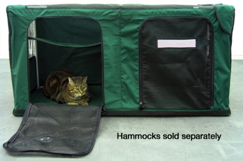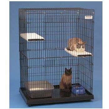 Precision Pet Kitty CondoKeep your cat safe and secure while still providing a large area for frolicking and napping with our Precision Pet Kitty Condo. Two plastic shelves become cozy lofts with removable sheep skin covers and are perfect for perching and observing, or long cat naps. Large plastic base offers enough room for a litter box, and the double door opening allows for easy access to your pets, water, food and litter. Rolling castors allow you to simply glide the Precision Pet Kitty Condo into a different spot as the sunlight changes throughout the day.The Precision Pet Kitty Condo conveniently collapses for travel or outside use and is a great product for protecting and caring for new litters, or cats who are feeling under the weather or grumpy. A great choice for showcasing beautiful, inquisitive and loving cats and kittens waiting to be adopted....