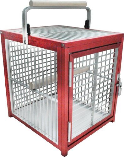 Aluminum Pet Travel Cage and Carrier for Birds, Dogs, and Cats 15"x12"x14" (Red / Silver)